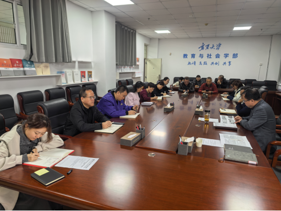 2025年10月20日上午,教育与社会学部在文荟楼713室组织全体教职工开展理论学习,深入学习贯彻习近平总书记给全国特岗教师代表的重要回信精神及近期学校重要工作部署。