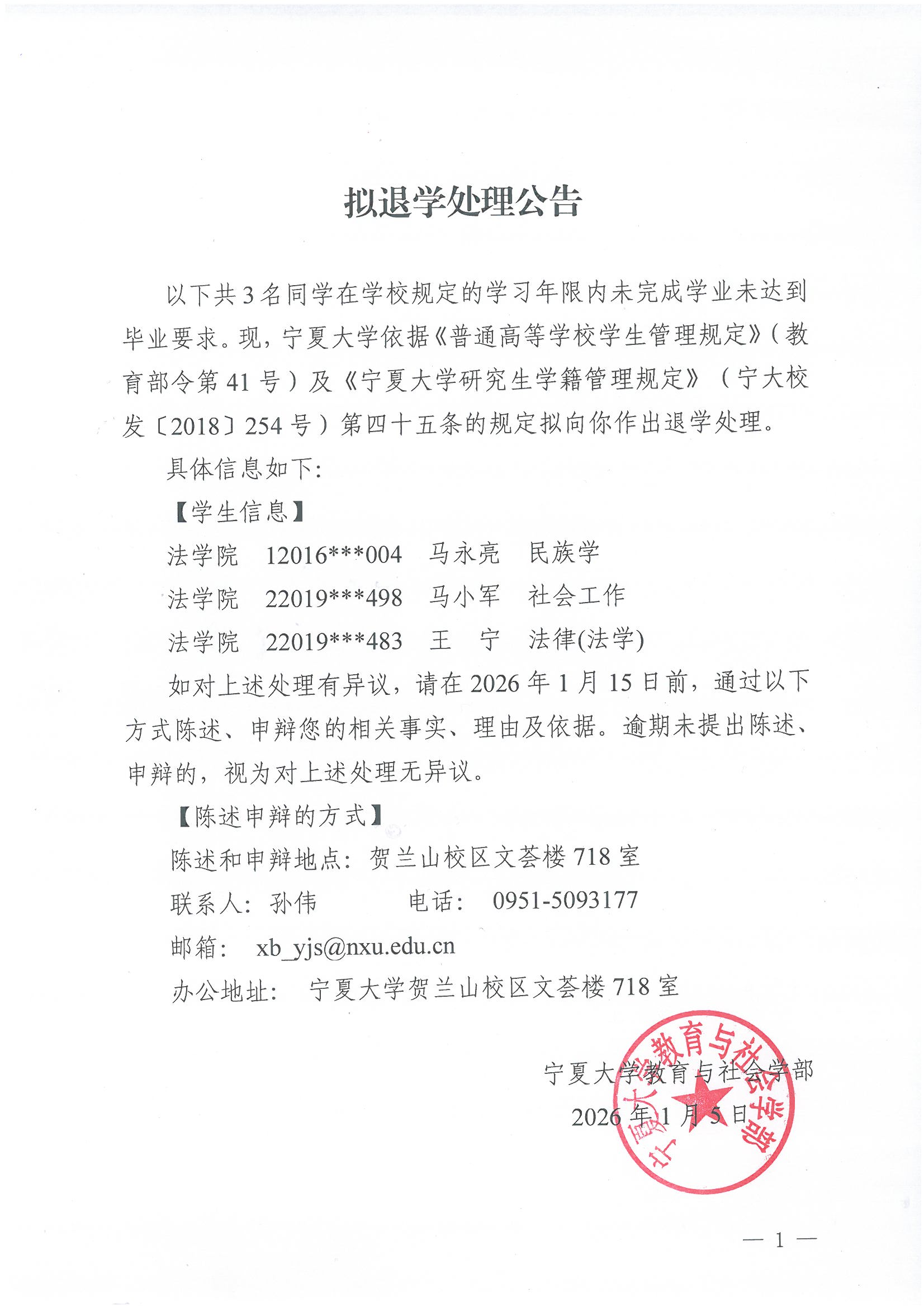 拟退学处理公告