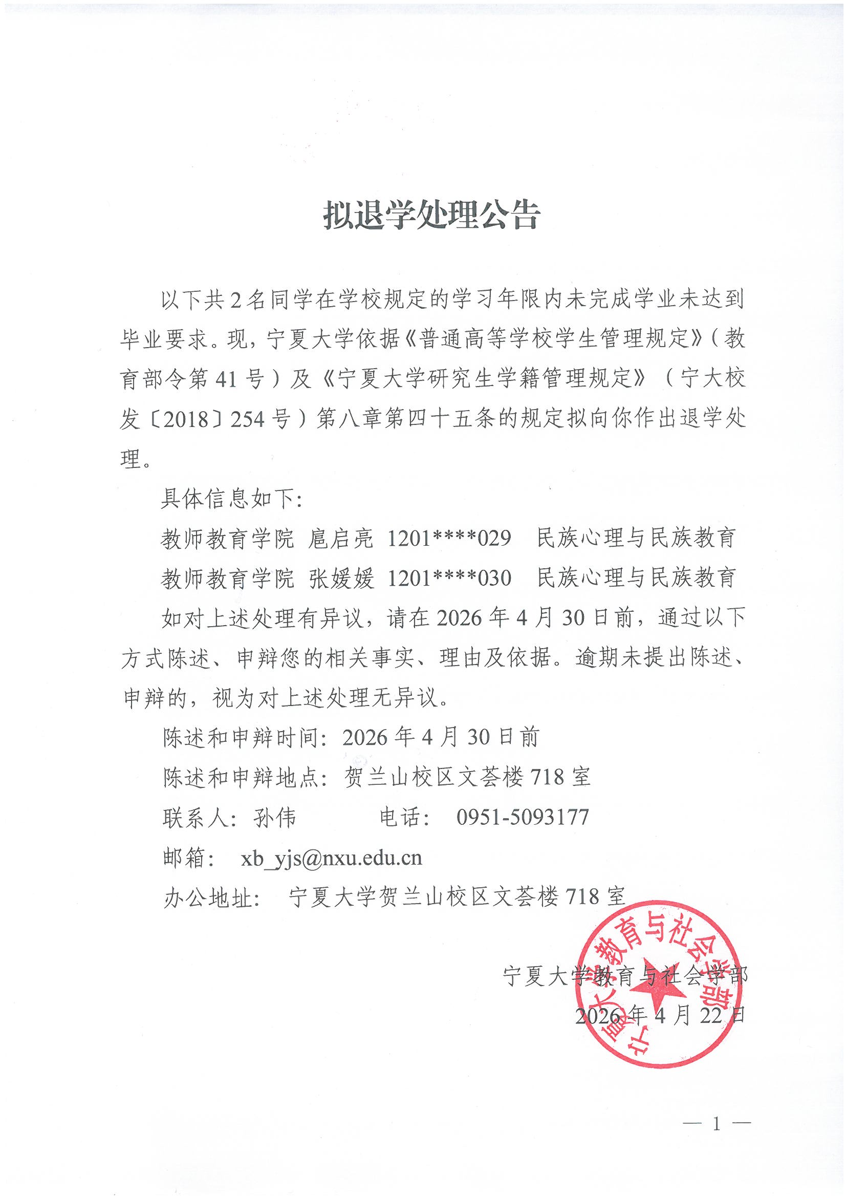 拟退学处理公告
